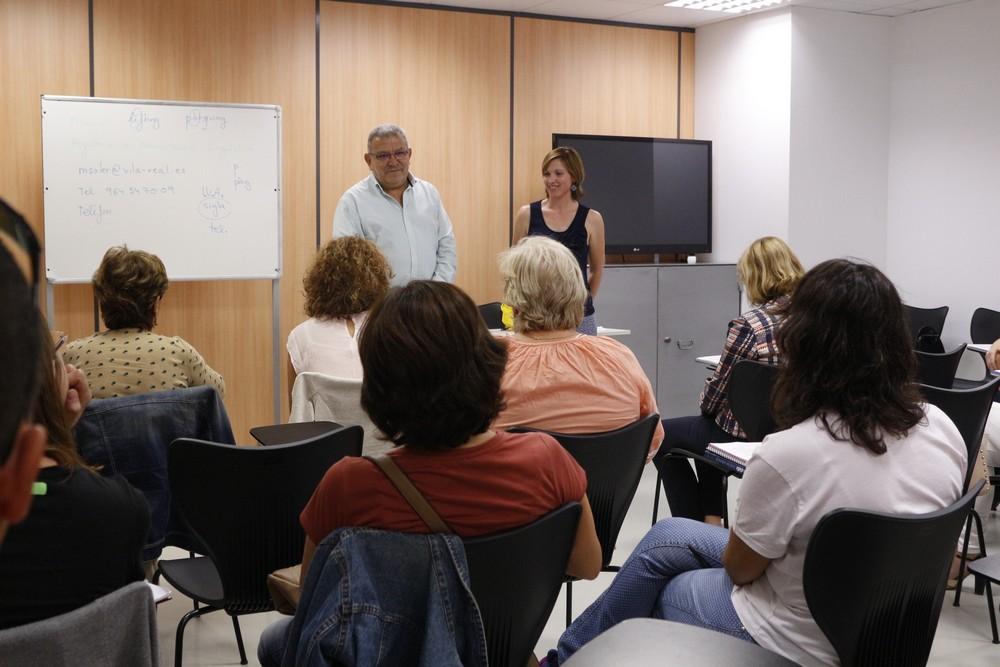 El regidor de Normalització Lingüística a l'Ajuntament de Vila-real, Pasqual Batalla, ha asistit a l'inici del curs de valencià per a pares i mares, l'últim grup del qual ha començat avui dimecres a l'Espai Jove, on la tècnica de l'àrea, Mònica Soler imparteix les classes.
