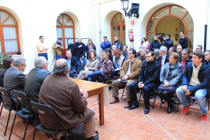 El primer teniente de alcalde y concejal de Economía del Ayuntamiento de Vila-real, Pasqual Batalla, así como concejales de la corporación municipal, ha participado hoy en la presentación de la Associació d’Aturats de Vila-real, Adavi.