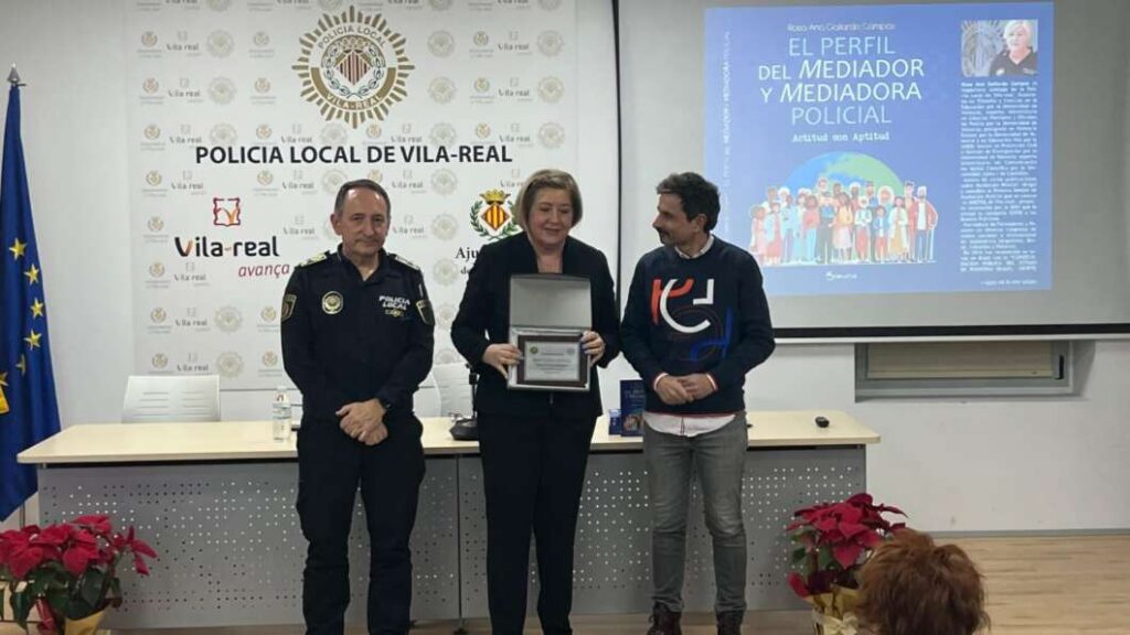 Marín també ha tingut paraules d'agraïment per a Rosa Ana Gallardo, inspectora jubilada de la Policia Local que va ser, durant molts anys, la responsable de la Unitat de Mediació Policial de l'Ajuntament de Vila-real. Gallardo ha participat en la jornada amb la presentació del seu llibre 'El perfil del mediador i mediadora policial'. Actitud amb aptitud, una obra en la qual l'autora demostra l'ampli coneixement i l'experiència que ha anat adquirint al llarg dels anys en aquesta matèria i que l'han convertida en un referent de la mediació policial.