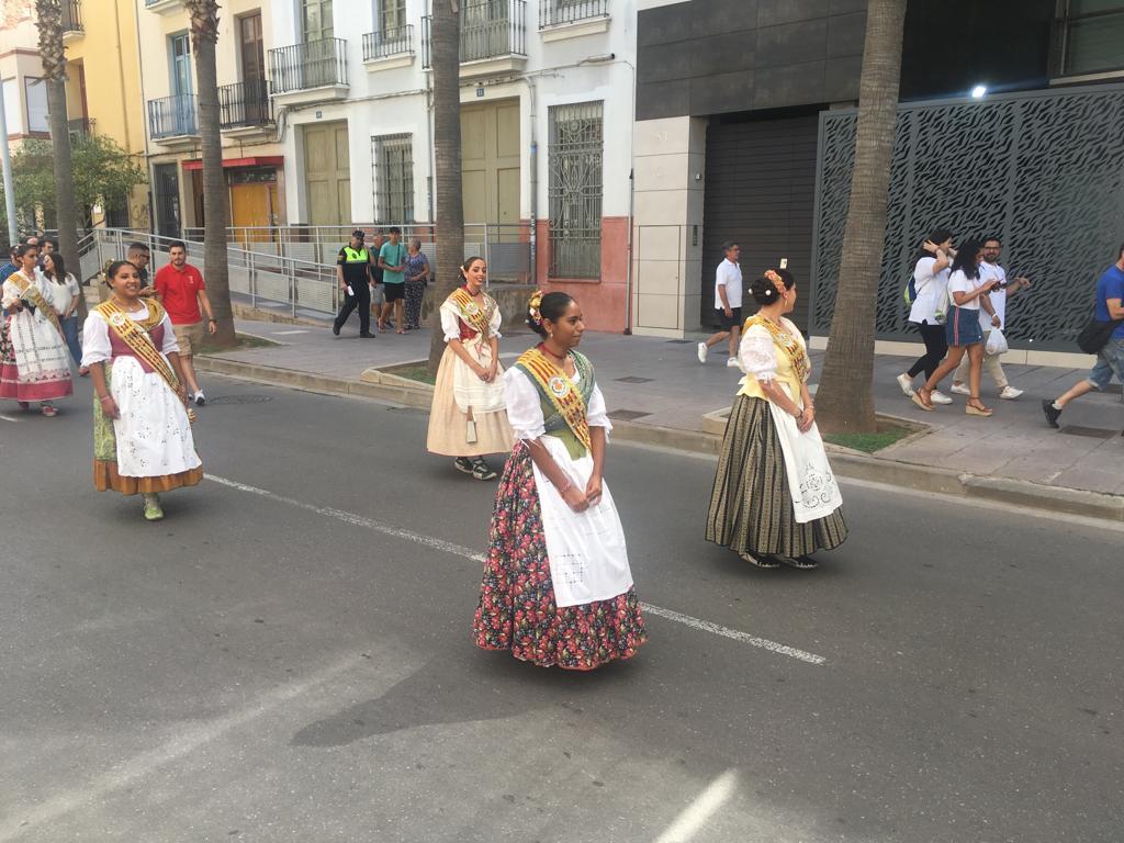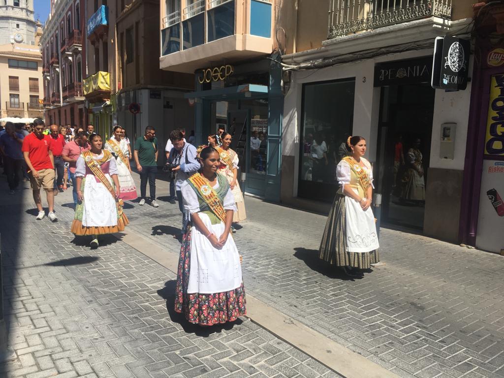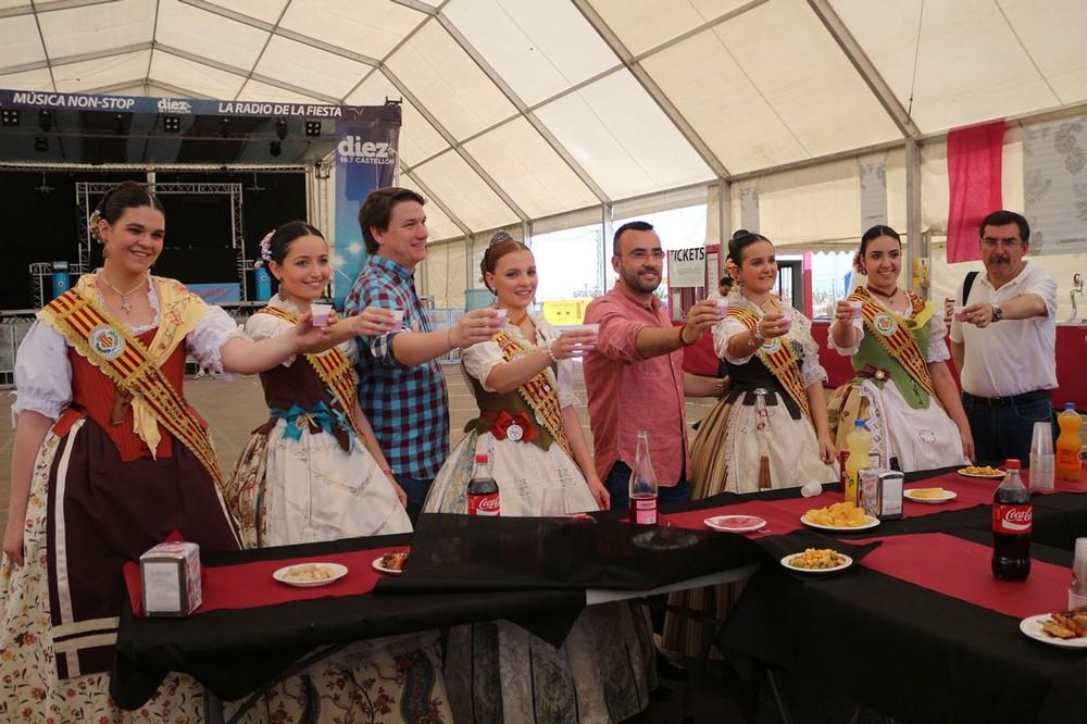 Després de la descàrrega de coets i volteig de campanes al jardí de Jaume I, la comitiva oficial s'ha desplaçat a l'avinguda d'Europa, per a tallar la cinta d'una nova edició del Recinte de la Marxa. Un espai festiu al qual enguany se suma, per primera vegada, la Fira gastronòmica promoguda per la Comissió de Penyes, amb motiu del seu 40é aniversari, amb cinc casetes amb tapes populas i gastronòmiques que estarà situada durant totes les festes en 1.500 metres quadrats de l'avinguda de la Murà. Per arribar al recinte de la nova Fira, que s'ha inaugurat també amb el president de la Comissió de Penyes, David Garcia, la comitiva oficial s'ha desplaçat amb el Groguet, el servei d'autobús urbà gratuït, pioner i únic gratuït de les seues característiques a Espanya. La comitiva oficial ha estat formada també pel regidor de Festes, Diego A. Vila, i el president de la Junta de Festes, José Pascual Colás, a més de regidors i regidores de la corporació municipal, precedits per la música de dolçaina i tabal del Trull.
