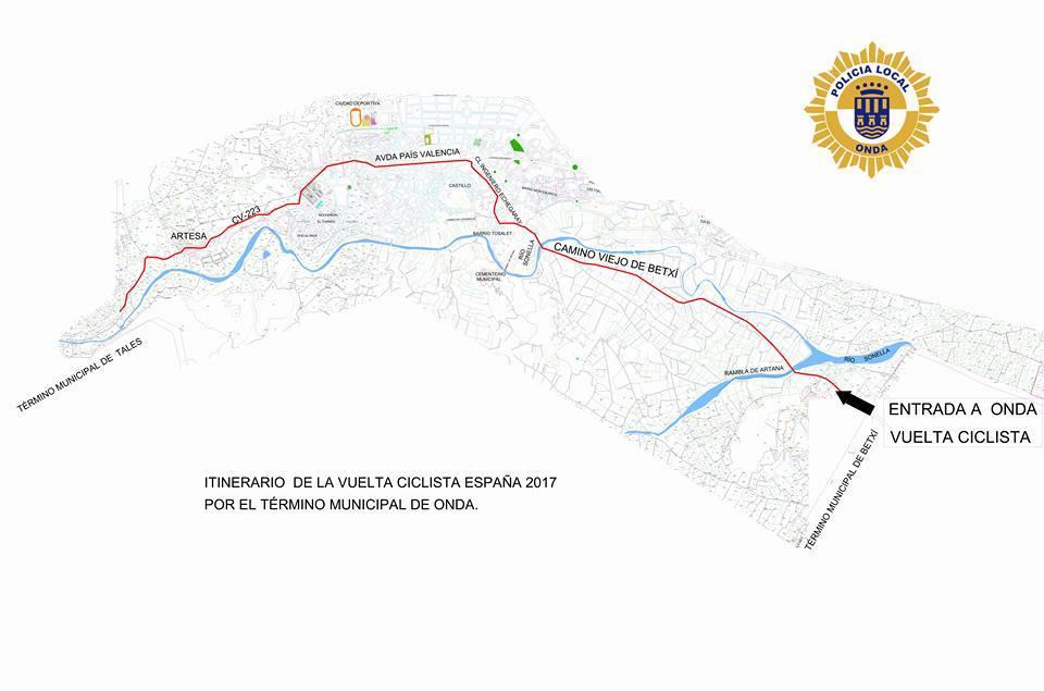 230817 mantenimiento caminos y vías Ayuntamiento de Onda por paso Vuelta EspañaDemà dijous, a partir de les 13.10 hores, està previst que els corredors d'aquesta prova entren al termemunicipal d'Onda, recorrent diferents carrers de la ciutat. El pelotó accedirà a la localitat pel camí vell de Betxí, on passarà per la calle Enginyer Echegaray; avinguda País Valencià; en contra adreça pel tram de la Panderola (entre la prolongació del carrer Alfonso Pallarés i el carrer Enginyer Echegaray); carrer La Cossa; avinguda Tales, passant pel Carmen; i avinguda La Plana (Artesa) adreça cap a Tales.