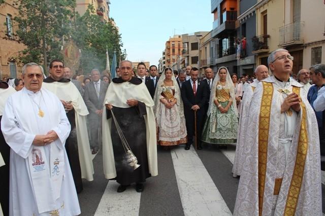 La población se volcó para acompañar a la patrona en la procesión desde su ermita hasta la Arciprestal, que se inició tras la recepción de la Mare de Déu de Gràcia ante el colegio de los Carmelitas por los vecinos autoridades, la reina de fietas, Lorena Traver, sus damas y el clero.