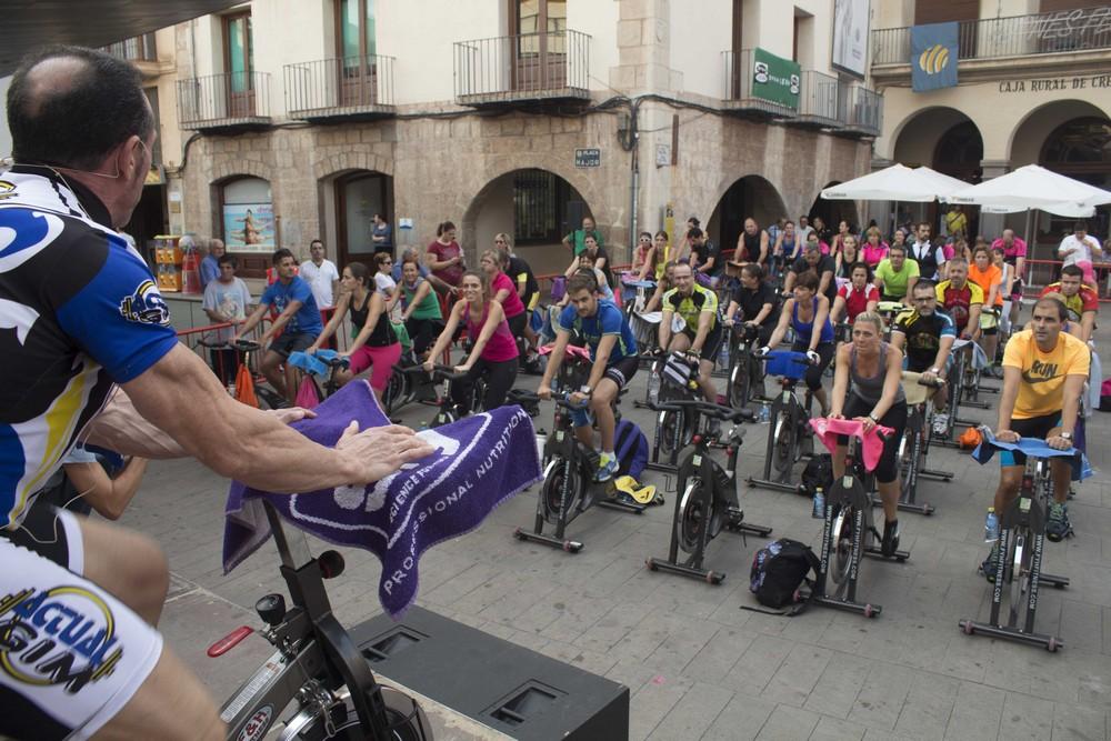 La jornada de ayer estuvo marcada por el deporte y por la solidaridad. El Maratón de spinning Pedaleja per La Vila tuvo un gran éxito de acogida y participación. Su carácter benéfico llama la atención de los habitantes que se solidarizan-con una donación de apenas 5 euros-con los centros de la localidad que se encargan de cuidar a personas con Alzheimer, tales como el Centre de Dia Molí la Vila, Associació de Familiars d’Alzheimer.