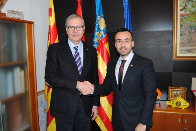 El alcalde de Vila-real, José Benlloch, y el alcalde de la localidad italiana de Sacile, Roberto Ceraolo, han firmado esta mañana el pacto de hermanamiento que derivará, el próximo mes de abril, en la firma del acuerdo definitivo de hermanamiento entre ambas poblaciones. Ceraolo y la concejala del municipio italiano Maurizia Salton se han desplazado a Vila-real con motivo de las fiestas fundacionales de la ciudad para formalizar la firma de este ‘pacto de amistad’ entre Vila-real y Sacile.