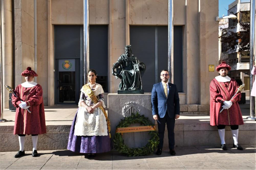 L'alcalde, José Benlloch, i la reina de 2019, Carmen Rubert, juntament amb les seues dames, i corporació municipal han presidit el tradicional homenatge a Jaume I, amb l'ofrena de les entitats socials i culturals de la ciutat. La Filla Predilecta de Vila-real Dolores Cortés també ha encapçalat la comitiva, que s'ha desplaçat des de la plaça Major -on s'ha fet l'ofrena a la imatge del rei Jaume I- fins al jardí de Jaume I, fent parada en un altre dels símbols de l'origen medieval de Vila-real, la Torre Motxa.