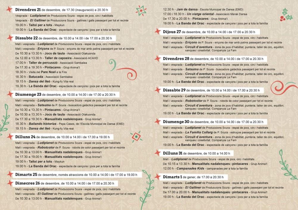 El recinte estarà obert fins a l'1 de gener amb mercadet nadalenc tradicional, atraccions per un 1,5 euros i zona d'animació i joc