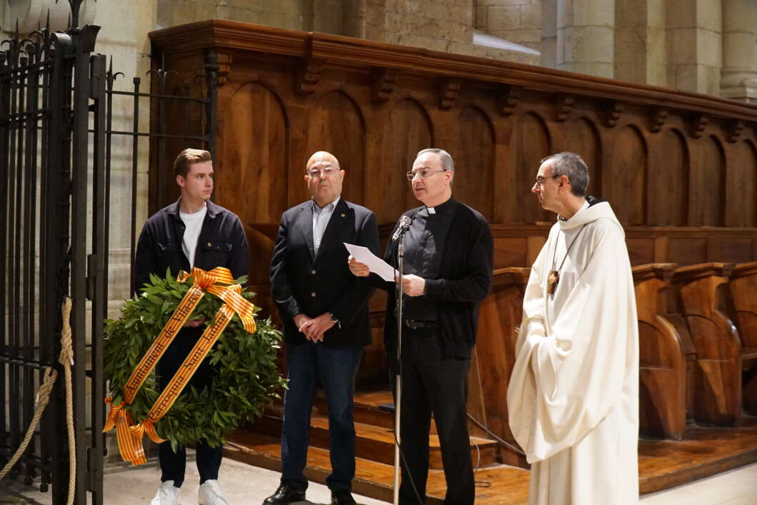 La comitiva ha fet una ofrena a la tomba del rei fundador i ha lliurat una placa commemorativa de la jornada al vila-realenc Rafael Barrué
