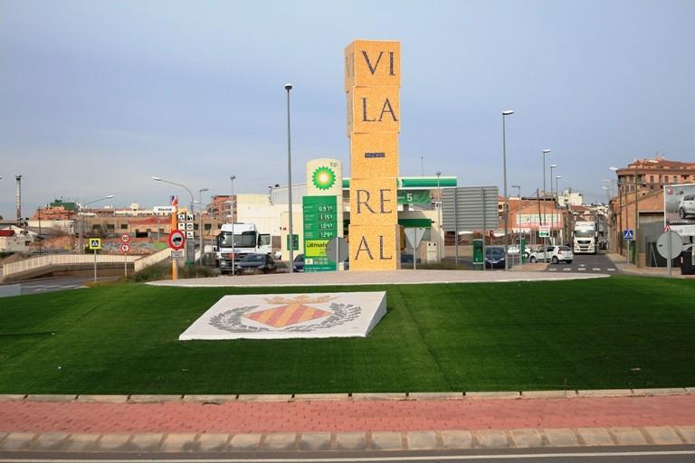 Dentro del plan también se incluye la rotonda que comunica con la CV-185 que une Burriana con Vila-real y que da acceso al Hospital de la Plana y a la nueva Ciudad Deportiva del Villarreal CF, cuya urbanización acaba de finalizar, con la instalación de un monolito de cinco cubos confeccionados en trencadís que forman el nombre de Vila-real, realizados sin coste por una fundación que trabaja con personas discapacitadas, que además ha elaborado los escudos del equipo de fútbol y de la ciudad para la base.