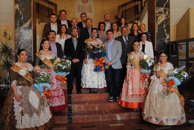 El alcalde de la ciudad, José Benlloch, junto con el presidente de la Junta de Festes, José Pascual Colás, el concejal de Fiestas, Xus Sempere, y la reina de las fiestas 2013, Lorena Traver, acompañada de sus damas Maite Fonfría, Ana Robles, Ana Mas y Rocío Artero, han presentado esta mañana en la Casa dels Mundina el programa de la próxima la Fira i Festes de Sant Pasqual 2013.
