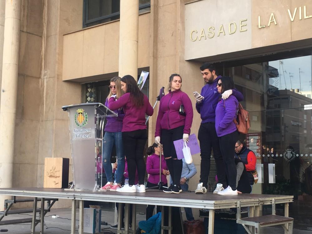 La gent ha començat a arribar al carrer Sant Josep de Vila-real ben aviat i és que a l’ambient es palpava hui molta activitat. A les cafeteries i als carrers del voltant es podien veure grups amb samarretes morades, com s’havia acordat en el grup de Facebook, Lucha contra la violencia de género Andrea Carballo, creat per Daria López, Maruja Aranda, Carmen Risueño i Rocío Garrigues, i que ha servit perquè la societat civil s’alce amb una sola veu i diga ‘No a la violència de gènere’!, com es llegia en el cartell al capdavant de la marxa i en mans de familiars i amics. En altres missatges en mans dels assistents es podia llegir ‘Tolerància 0’, ‘Va per tu Andrea’ o ‘Si toques a una, responem totes’. Les artífexs de l’acte han guiat la marxa, per darrere d’un vehicle de la Creu Roja i efectius de Policia Local i Protecció Civil, per tot el seu recorregut a través dels carrers Joan Baptista Llorens, l’encreuament de l’Avinguda Riu Ebre, el Camí Real, el carrer Pérez Bayer, la plaça de Sant Pasqual, el Raval, el carrer Major i finalment la plaça de l’Ajuntament.