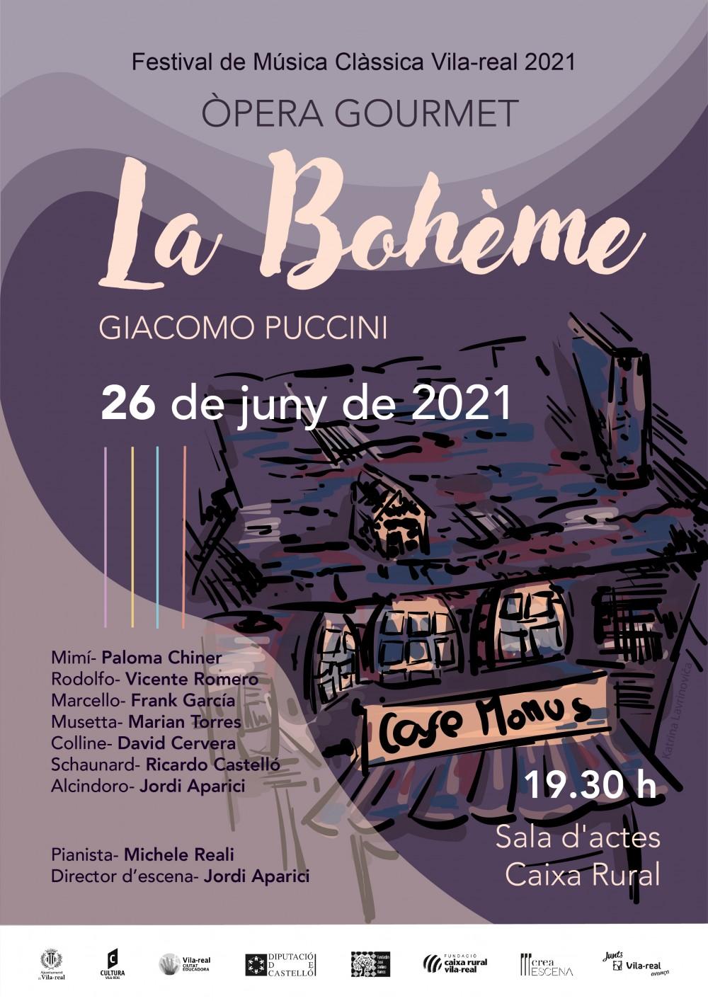 La programació compta amb una conferència sobre Giacomo Puccini a càrrec de Pol Avinyó,historiador musical del Gran Teatre del Liceu de Barcelona, aquest pròxim dissabte 19 de juny, a les 19.00 hores en el Teatre Tagoba. El dissabte 26 de juny serà el torn de l'òpera gurmet, amb La Bohème, de Puccini, a les 19.30 hores, en la sala d'actes de la Fundació Caixa Rural Vila-real. Tots dos esdeveniments són amb entrada lliure fins a completar aforament.