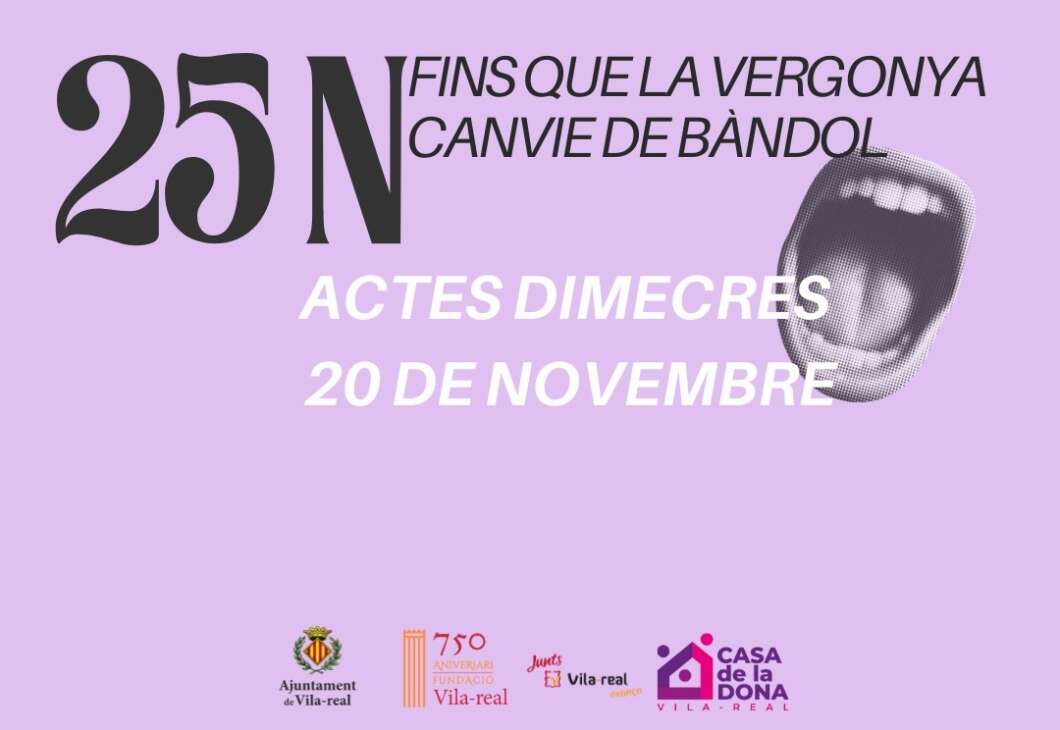En aquesta edició, sota el lema ‘Fins que la vergonya canvie de bàndol’, Vila-real busca acabar amb els estigmes i empoderar a les dones en la lluita contra la violència de gènere a través de propostes com a tallers, conferències i accions participatives i culturals, a més de la tradicional concentració i lectura del manifest que tindrà lloc dilluns que ve 25 de novembre en la plaça Major.
