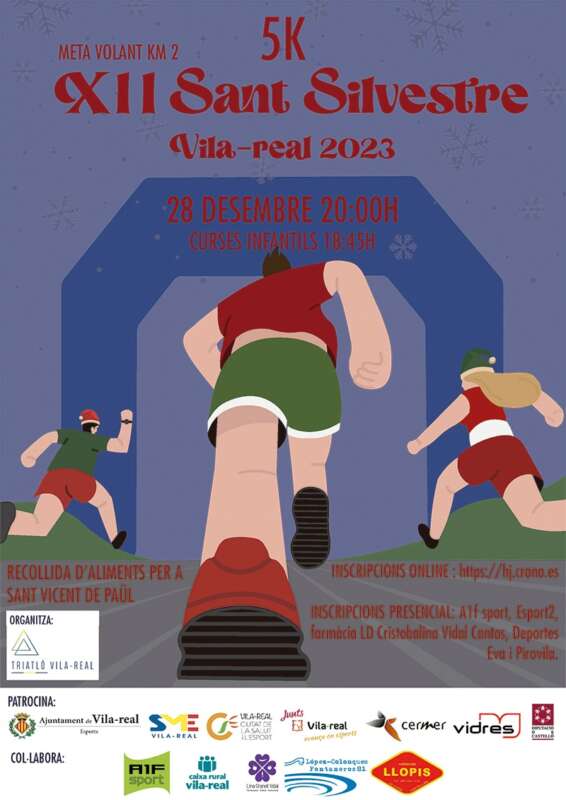 Vila-real acomiada l'any amb la carrera més divertida, la Sant Silvestre, que organitza el Club Triatló Vila-real amb la col•laboració del Servei Municipal d’Esport (SME). La Sant Silvestre posarà la guinda del circuit de carreres populars d'enguany el pròxim 28 de desembre a les 20.00 hores amb un recorregut de 5 quilòmetres pel centre de la ciutat. La Sant Silvestre, coneguda com la cursa de la disfressa, és una de les proves estrela del circuit, tal com ha assenyalat el regidor d'Esports, Xus Madrigal, qui ha agraït el treball del Club Triatló Vila-real i del’SME perquè “puguem acomiadar l'any amb una gran festa esportiva”.