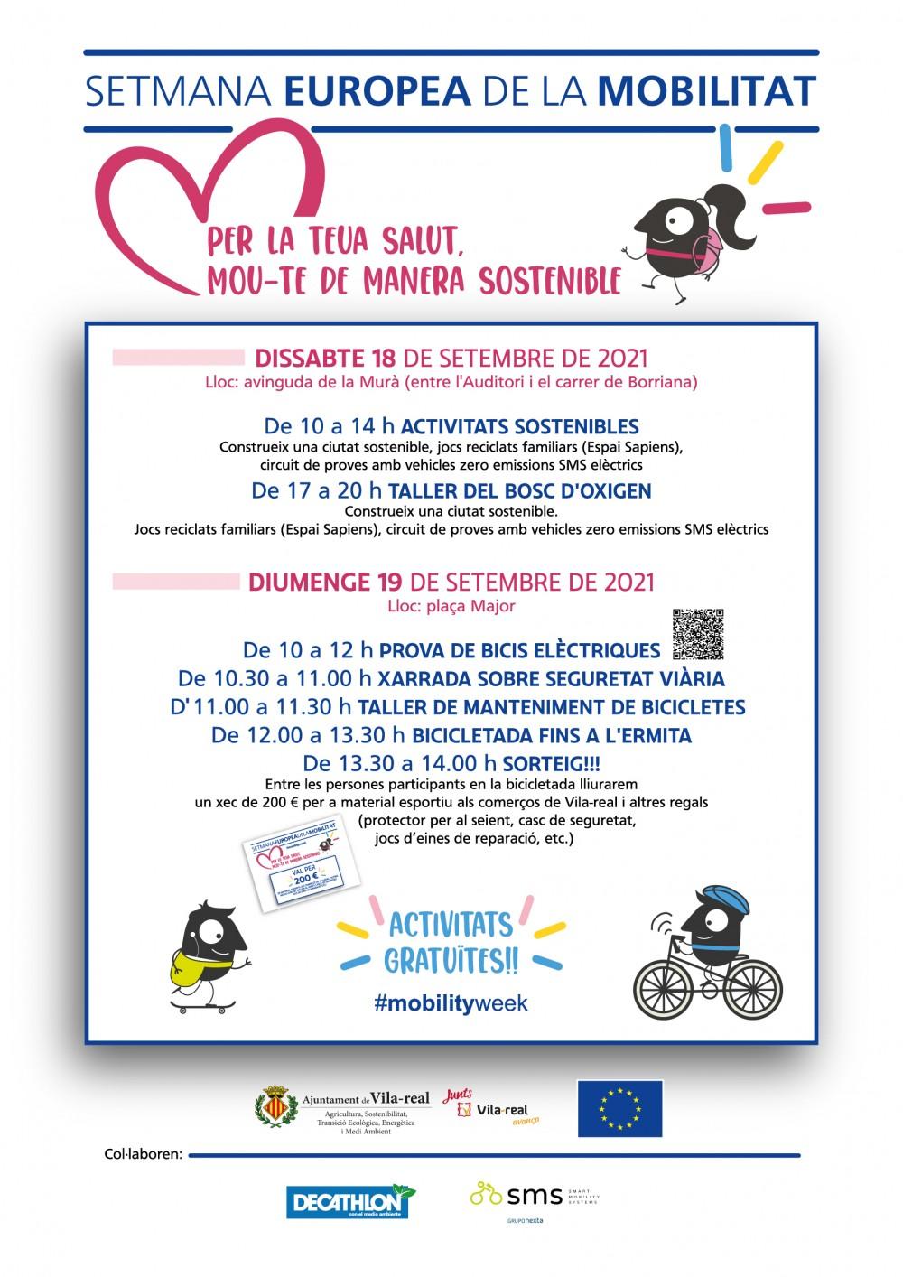 L’Ajuntament de Vila-real, a través de les regidories de Mobilitat i de Sostenibilitat, se suma a la Setmana Europea de la Mobilitat amb accions de conscienciació i activitats lúdiques, a les quals s'uneixen iniciatives de gran importància amb la finalitat de promoure els desplaçaments sostenibles en l'entorn urbà. Així, del 16 al 22 de setembre, coincidint amb la celebració als països europeus de la Setmana de la Mobilitat, Vila-real llançarà un missatge a favor de la construcció d'una ciutat més sostenible, segura i saludable a través d'un canvi en els hàbits de mobilitat de la població. La senyalització d'itineraris per als vianants, la instal·lació de bases d'aparcaments per a vehicles de mobilitat personal o l'edició d'una guia de bon ús de l'autobús urbà gratuït Groguet es complementen amb les activitats dirigides al públic familiar que es realitzaran aquest cap de setmana amb tallers infantils, prova de bicicletes elèctriques, una xarrada sobre seguretat viària o la tradicional bicicletada del diumenge.