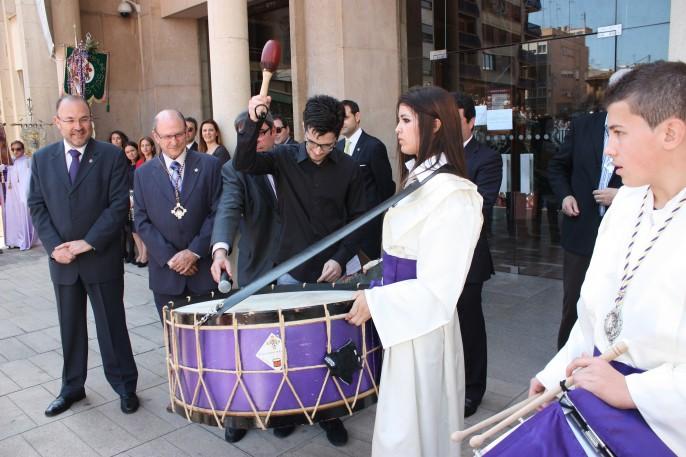 En esta Tamborrada, que ha contado con la participación del regidor de Turismo, Emilio M. Obiol, el presidente de la Junta Central de Semana Santa, Pascual Sanz y los regidores de la corporación municipal, han participado las nueve cofradías y hermandades que tienen banda de bombos y tambores.