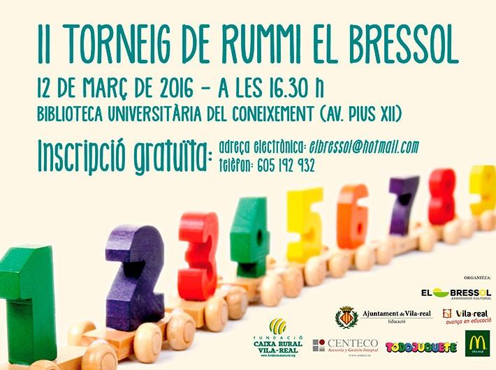 La Biblioteca Universitària del Coneixement (BUC) acogerá, el próximo sábado, la segunda edición del Torneo de Rummy El Bressol, un juego de mesa que estimula la concentración y la organización mental a través de las combinaciones de cartas, números y colores. El torneo, organizado por la asociación El Bressol, cuenta con la colaboración de la Concejalía de Familia del Ayuntamiento de Vila-real y se desarrollará entre las 17.00 y las 21.00 horas. La concejala del área, Rosario Royo, ha animado a los vila-realenses a inscribirse en una competición que, señala, “promueve la actividad intergeneracional y en familia, al tiempo que estimula el ejercicio mental y las habilidades en un juego de mesa que se ha demostrado muy provechoso en particular para la gente más mayor”. Los interesados en participar en el torneo pueden inscribirse de manera gratuita en el correo elbressol@hotmail.com