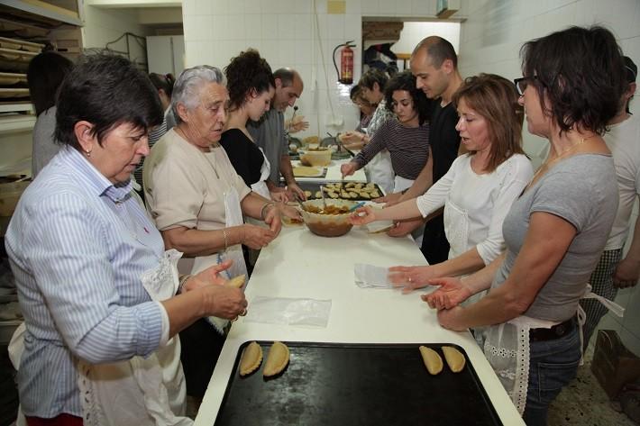 Los mayorales de Sant Antonio de Vilafranca han dedicado la jornada de hoy a elaborar 15.000 pasteles rellenos de confitura de calabaza. Para ello han trabajado durante toda la mañana en tres hornos de la localidad. En torno a 100 personas han colaborado con ellos en la elaboración de los pasteles.