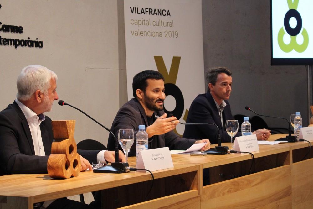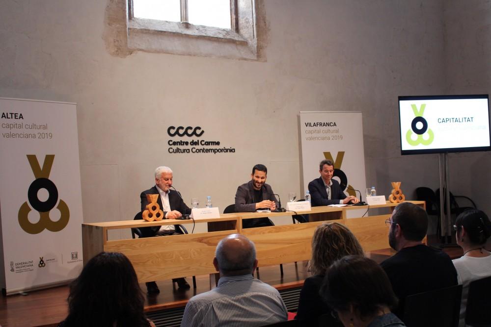 El conseller d’Educació, Investigació, Cultura i Esport, Vicent Marzà, acompanyat per l’alcalde d’Altea, Jaume Llinares, i l’alcalde de Vilafranca, Óscar Tena, ha presentat els actes d’obertura de les dues capitalitats culturals valencianes 2019-2020. La presentació també ha comptat amb la presència del regidor de Cultura d’Altea, Diego Zaragozí, i la regidora de Cultura de Vilafranca, Silvia Colom.