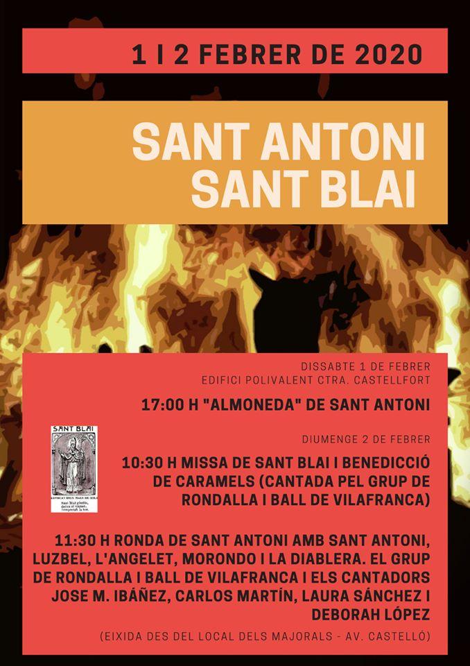 El diumenge dia 2 de febrer començarà amb la missa cantada pel grup de rondalla i ball. En la missa es beneiran els caramels de Sant Blai. Després se celebrarà la Ronda de Sant Antoni amb la rondalla i grup de ball de Vilafranca i els cantadors José M. Ibáñez, Laura Sánchez, Carlos Martín i Deborah López.