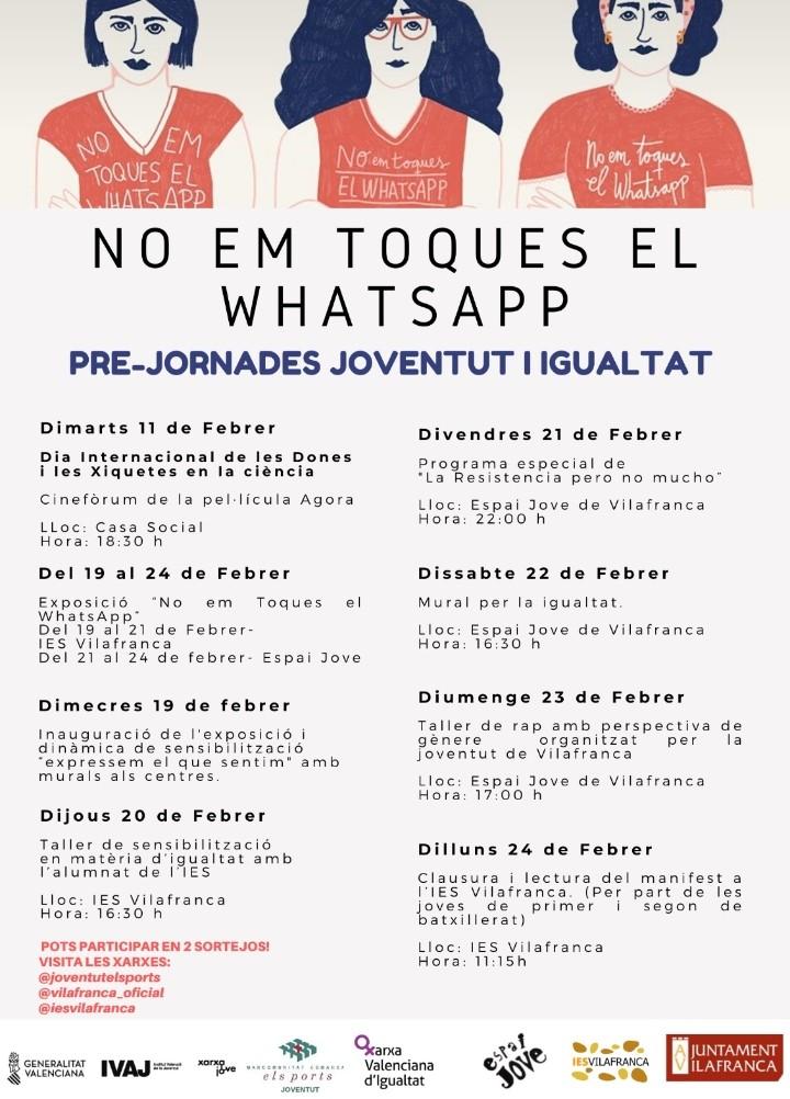 I del 19 al 24 de febrer es podrà visitar l'exposició 'No em toques el WhatsApp'. Estarà a l'IES Vilafranca fins al 21 de febrer quan passarà a l'Espai Jove.