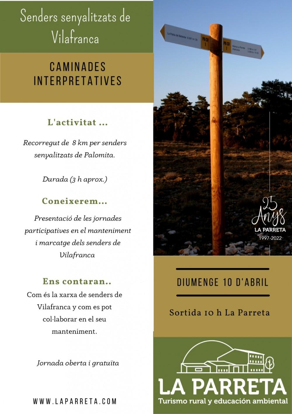 Així doncs, el diumenge 10 al matí tindrà lloc la caminada per les senderes senyalitzades del bosc Palomita. Amb un recorregut de 8 km, la marxa partirà de l'alberg La Parreta i tractarà d'interpretar totes les senderes i camins presents, així com de conéixer el seu manteniment i formes de marcatge. L'activitat és gratuïta i apta per a tots els públics. Aquella mateixa vesprada, i per a acabar amb els esdeveniments culturals del cap de setmana, a la Sala Carles Pons de la Casa de la Cultura de Vilafranca es podrà gaudir d'un concert d'òpera via Internet. Es tracta de l'obra 'Macbeth', de Verdi, que se celebra en el Palau de les Arts Reina Sofia de València.