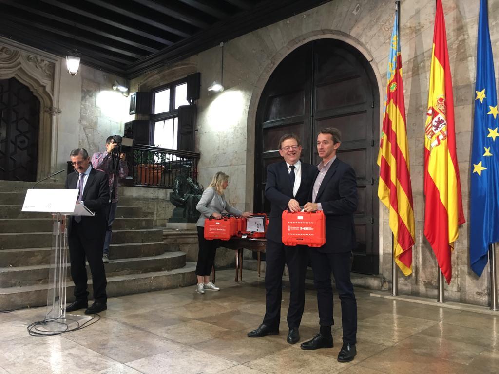 El Ayuntamiento de Vilafranca ha sido uno de los primeros en recibir el kit de comunicación de emergencias suministrado por la Generalitat Valenciana. Al acto oficial de entrega acudió el alcalde del municipio, Óscar Tena, quien recibió su lote de manos del president de la Generalitat Ximo Puig.