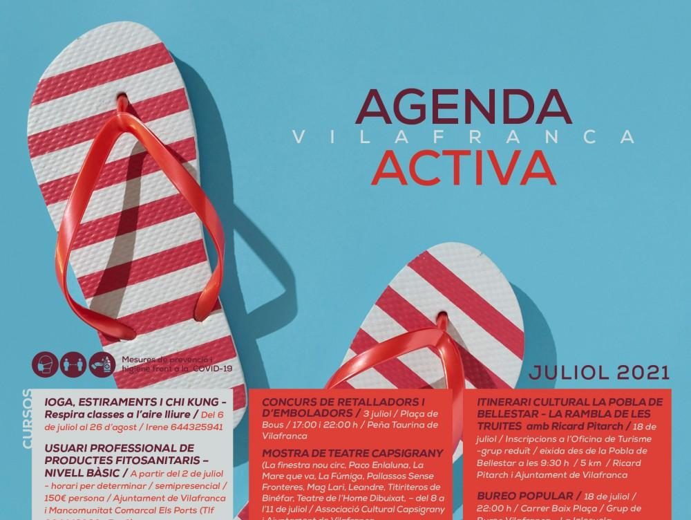 Tornen els cursos, exposicions i esdeveniments a Vilafranca. L'Agenda Activa, que coordina l'Ajuntament amb totes les entitats i col·lectius del poble, torna a emprendre el vol per retornar l'esperit cultural a la vila.