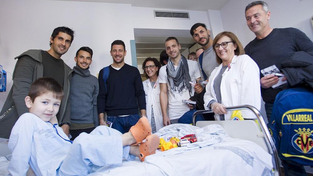 El primer equipo del Villarreal CF ha visitado, como cada año, a los niños y niñas ingresadas en los hospitales de La Plana de Vila-real, Rey Don Jaime de Castellón, Hospital General de Castellón y La Fe de Valencia para entregar regalos y así celebrar junto a ellos las fiestas navideñas. Los futbolistas, divididos en cuatro grupos, recorrieron las plantas de los centros para compartir momentos con los pequeños, que recibieron los regalos, autógrafos y se fotografiaron con los amarillos. Una jornada inolvidable para los pequeños y también para los futbolistas.