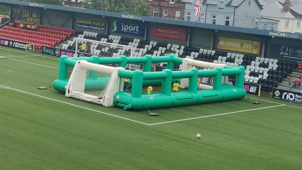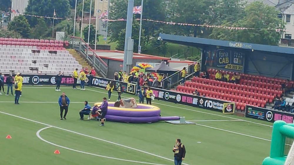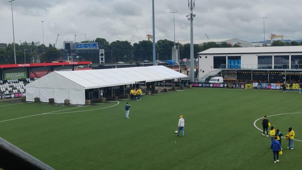 Cómo se puede ver en las imágenes, la afición puede fotografiarse con las copas de la Europa League, la Champions League y esperamos que la Supercopa grogueta, también pueden disputar unos mini partidos de fútbol o disfrutar de música en la carpa que han montado en el Seaview Stadium del Crusaders FC. Por si no hubiera basta, también disponen de un buey mecánico para disfrutar con risas de la tarde y de un bar por comida mientras esperan la esperada final.