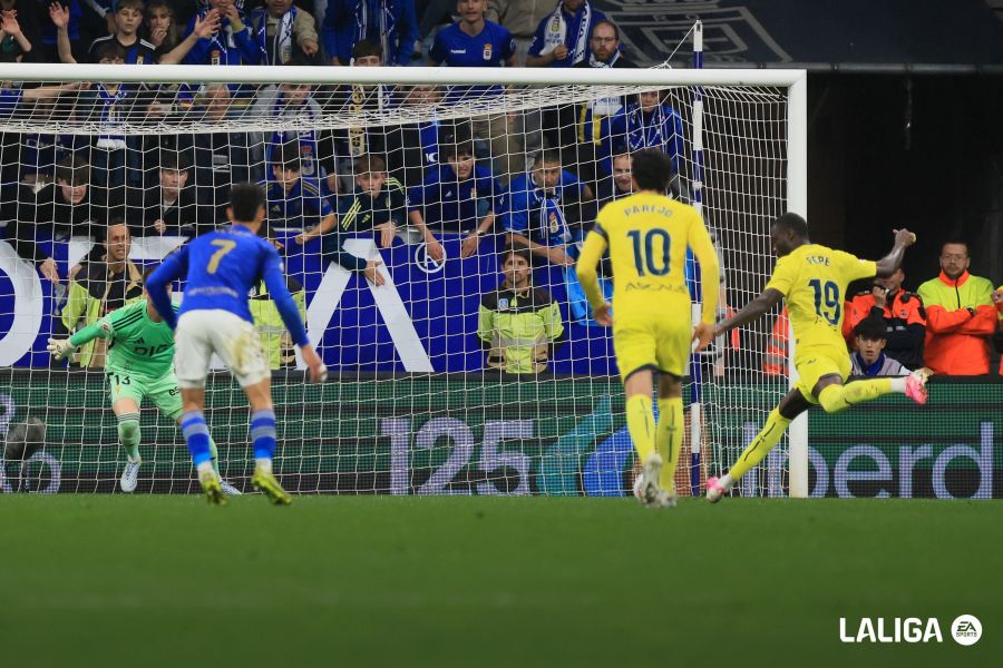 Va arrancar amb un canvi al Vila-real: Buchanan es va quedar en el vestuari i en el seu lloc va entrar el davanter Mikautadze. El partit va arrancar amb un Oviedo que va fer dos passos al capdavant. En el minut 52 el porter Arnau Tenas va salvar l'empat a un tir enverinat del golejador Alberto Reina. No va arribar en el minut 52, però sí en el 68 després d'una deixada d'Alberto Reina a Chaira, va creuar a la xarxa.