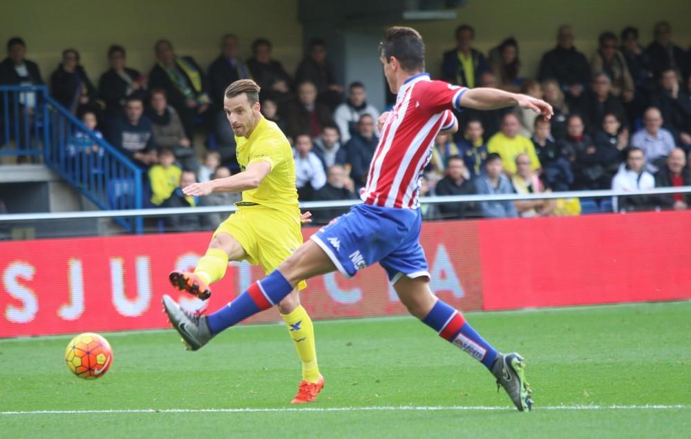 El 1-0 llegó en el minuto 26. Bruno Soriano robó un balón en la medular, filtró un pase interior para Soldado escorado en banda derecha y el '9' amarillo le regaló el gol a Bakambu, que tan solo tuvo que empujar el balón a la red en el segundo palo. El Sporting sufrió un contratiempo en el minuto 39, cuando Bernardo se lesionó en un forcejeo con Bakambu y tuvo que ser reemplazado por su compañero Meré.