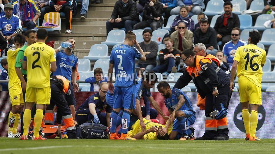 El Villarreal sumó un punto demasiado costoso en su visita al Coliseum Alfonso Pérez de Getafe, ya que Mateo Musacchio se lesionó a falta de un cuarto de hora para el final en una escalofriante acción cuando estaba pegado a la línea de cal. El gol amarillo lo anotó Uche desde el punto de penalti, pero Diego Castro empató poco después con un remate de cabeza.A-TomasPinapeleaunbalon