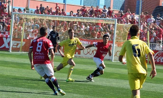 Empezó acosando el Nàstic. Los romanos apretaron desde el inicio. Se adelantaron en el marcador después de una acción con varios rechaces. Adri Cueva puso el 0-1 cuando se cumplía el décimo minuto de encuentro. A renglón seguido, el goleador yeclano del Villarreal B lanzó un golpe franco desde la frontal del área y el esférico se perdió por encima del larguero. Preámbulo de los buenos minutos amarillos que derivaron poco después en el empate.