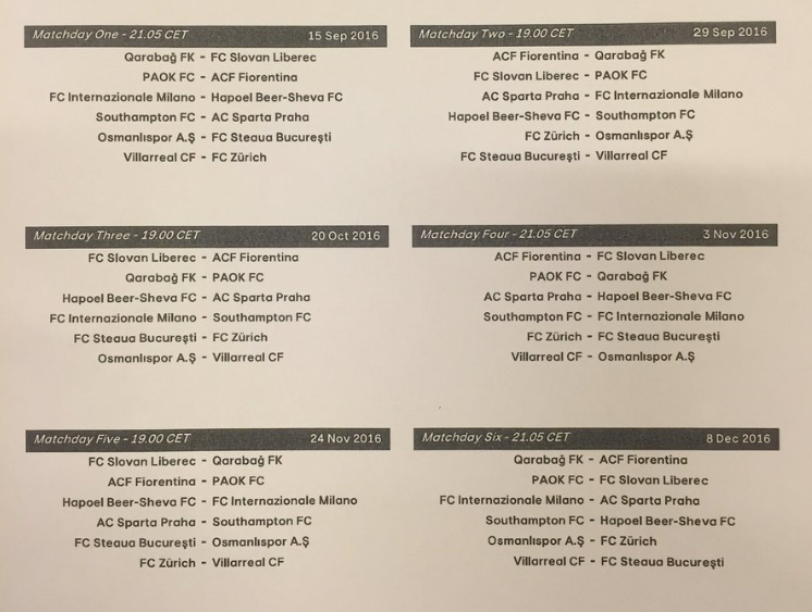 Grupo K: Inter de Milán (ITA), Sparta de Praga (RCH), Southampton (GBR), H.Beer-Sheva(ISR).