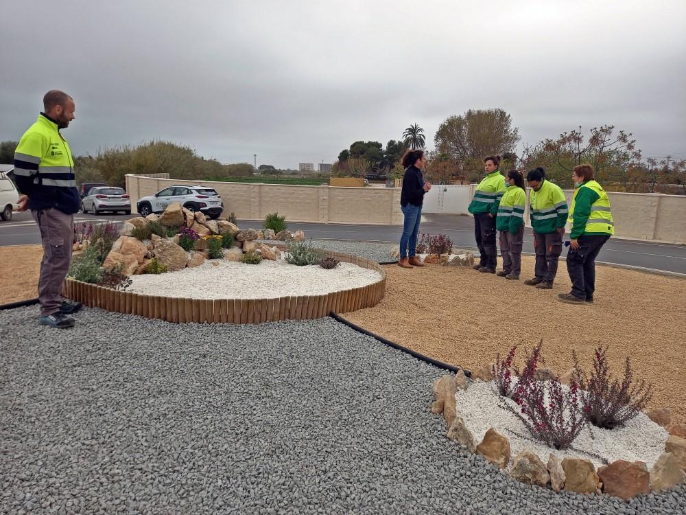 La concejala de Obras y Servicios, Carmen Morellà, explicaba que los trabajos han consistido en la preparación del terreno, realización de pendientes, preparación de alcorques y una rocalla, colocación de malla antihierbas y perfil de separación para la graba de diferentes tonalidades, así como la plantación de diferentes especies vegetales.