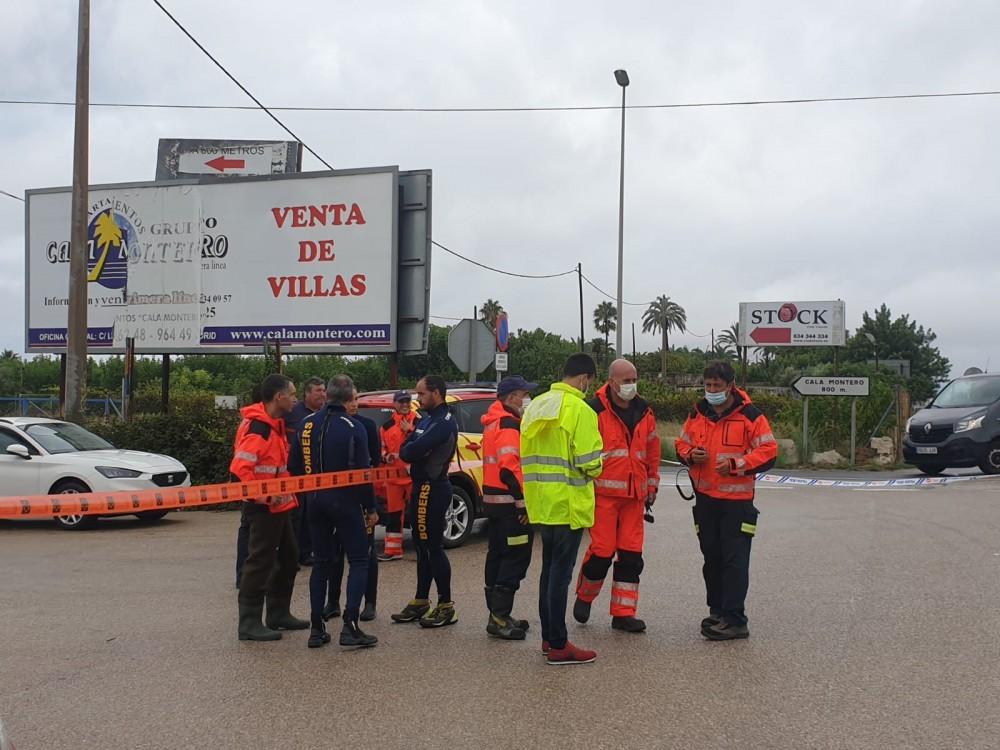 Un helicóptero ha rescatado a cuatro personas del interior de un vehículo en la N-238, se habían quedado atrapados en una zona donde no tenían salida, ni hacia adelante ni atrás. Por otra parte, un coche ha sido arrastrado por el agua al mar en el barranco Triador. No hay nadie en el interior, pero no se sabe si había alguien. los bomberos han traído a un equipo subacuático.