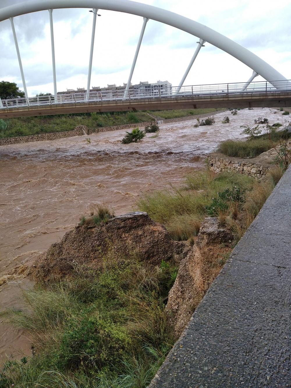 También aporta gran cantidad de caudal el barranco Barbiguera, que amenaza a desbordarse y cortar el puente de la carretera de la costa norte