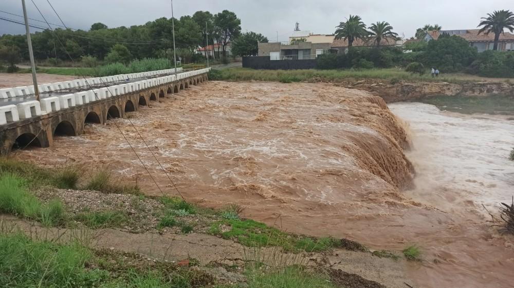 Además, también aporta gran cantidad de caudal el barranco Barbiguera, que amenaza a desbordarse y cortar el puente de la carretera de la costa norte, que vertebra la zona costera norte de Vinaròs. También está cortada la antigua Nacional 340 por estos mismos barrancos, además del antiguo camino de Alcanar.