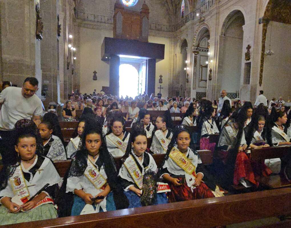 A las once y media de la mañana se iniciaba un pasacalle desde la calle San Juan con la imagen del santo hasta la iglesia arciprestal, donde al mediodía se iniciaba una misa en su honor con la asistencia de las reinas y sus cortes de honor, además de las autoridades.