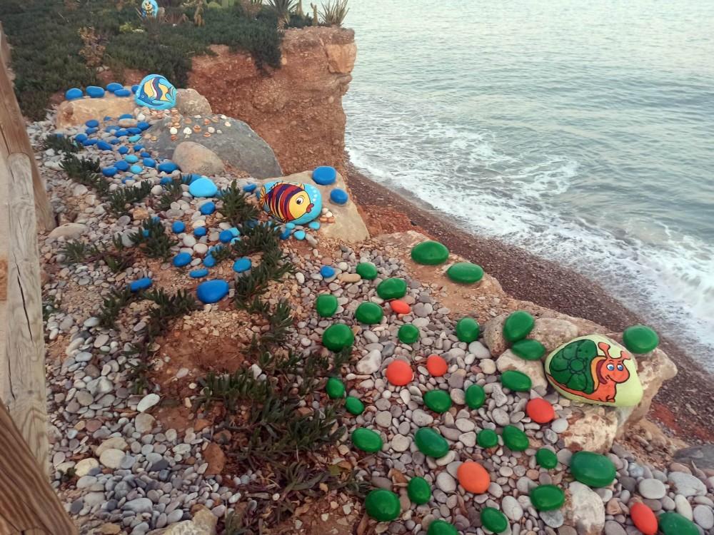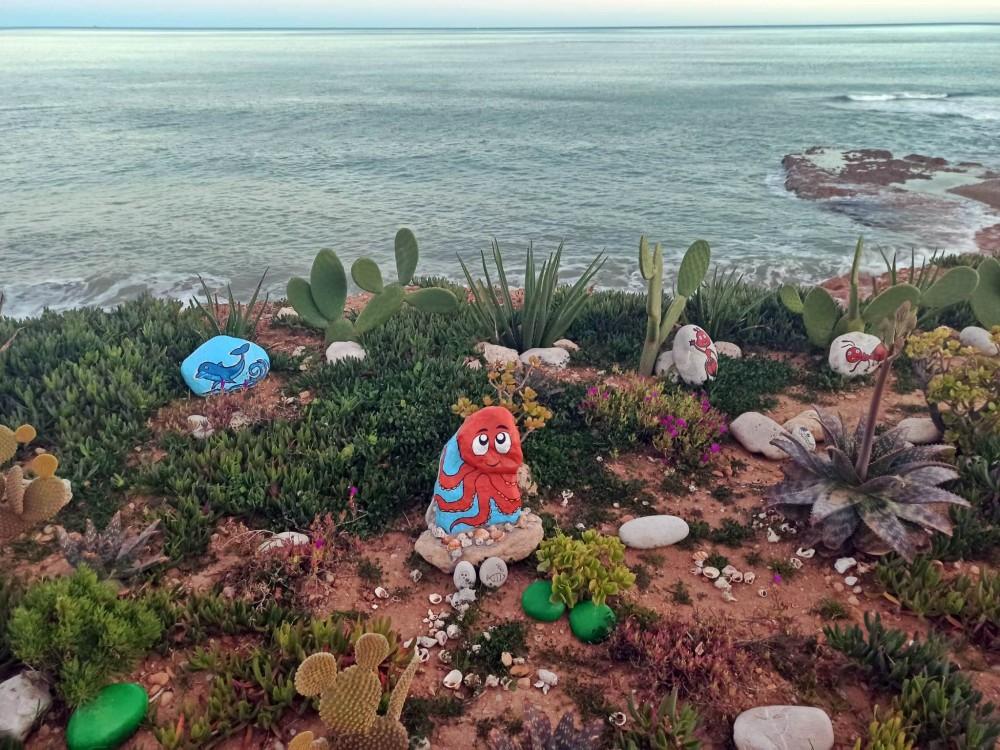 Un tramo de la costa de la zona de Cala Puntal se ha convertido en lugar de peregrinación para ver un colorido jardín realizado por un grupo de vecinos.