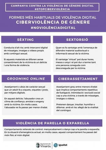 #StopCiberviolencia de género es la nueva campaña impulsada desde el Ayuntamiento de Vinaròs para sensibilizar de la violencia digital. Con ella se pretende sensibilizar y dar a conocer nuevas formas de violencia de género que están surgiendo como consecuencia de la aparición y desarrollo de las nuevas tecnologías y del aumento significativo del acceso a Intenet y redes sociales producido por el estado de alarma y el confinamiento en los hogares.