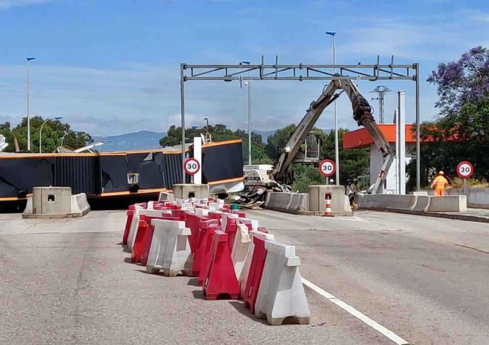 Transporte comienza los trabajos de derribo del peaje de la AP-7 en Vinaròs