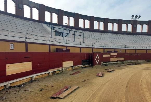 A lo largo de esta semana se están realizando una serie de trabajos por parte de la Brigada Municipal de Obras, como el mantenimiento de la pintura de la fachada de la plaza, la adecuación los pórticos del interior o la renovación de los elementos de madera que conforman el ruedo de la arena que se encuentran en mal estado.