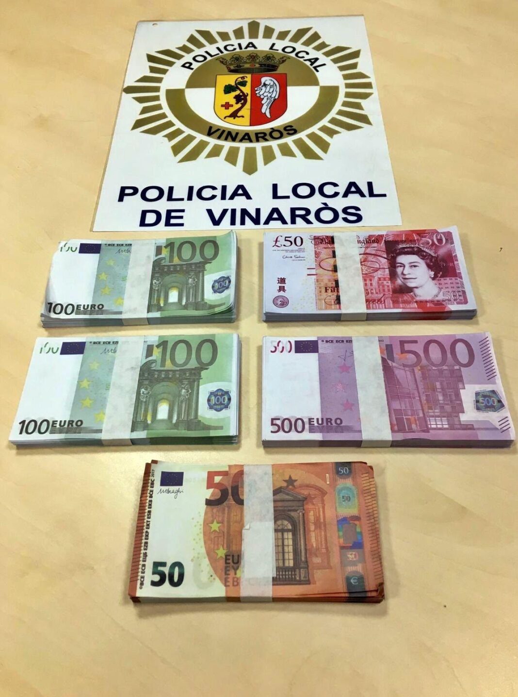 La Policía Local de Vinaròs conjuntamente con la Guardia Civil intervinieron la noche del sábado una gran cantidad de billetes de euros y libras falsificados.