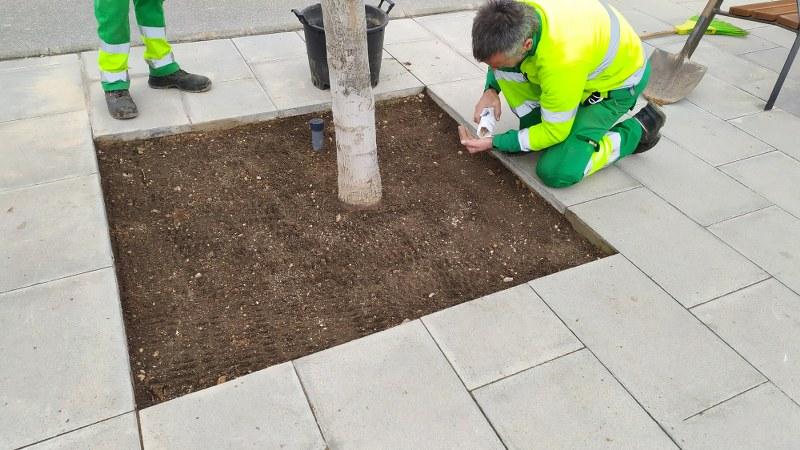 Se crean en los alcorques de los árboles islas de biodiversibidad que favorecerán fauna útil, insectos y pequeños invertebrados, para el control de plagas