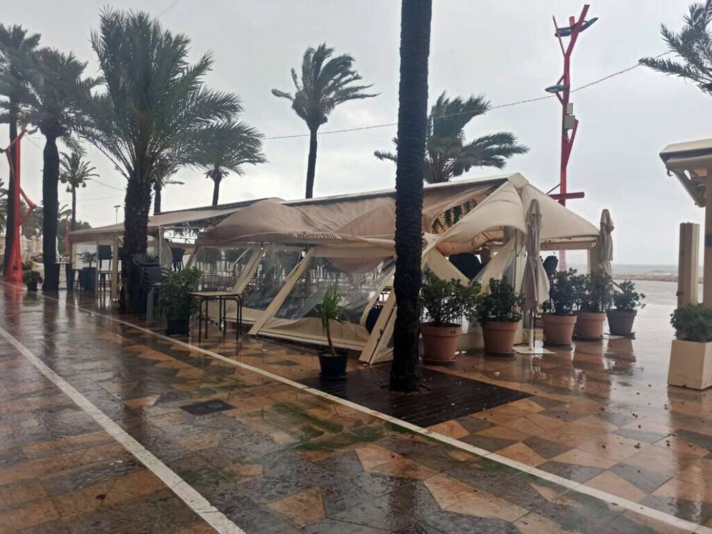 Por último, el fuerte viento ha afectado a una de las terrazas del paseo marítimo, afectando a una parte de su estructura.