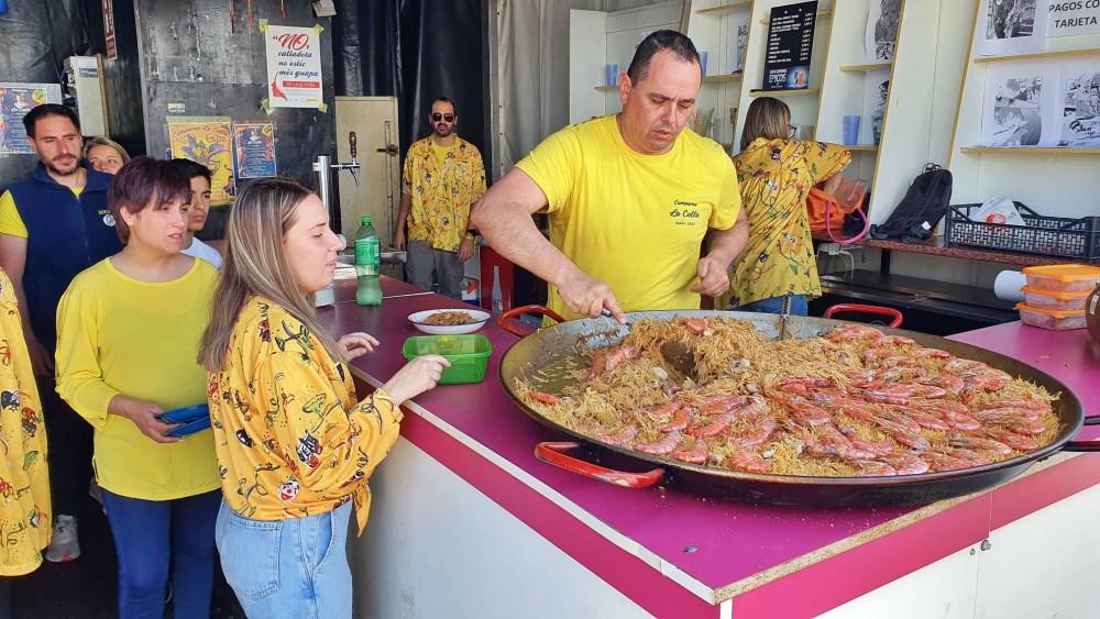 El ambiente en el recinto del carnaval, donde se encuentran los casales de las comparsas, también ha tenido ambiente este mediodía, aunque no tanto como días anteriores, algunas comparasas han comido para tomar fuerzas cara el desfile.