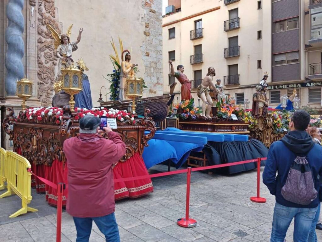 Los pasos de las diferentes cofradías que participan en las procesiones de Semana Santa se han expuesto durante la tarde de hoy en la plaza Parroquial, captando la atención de los visitantes las imágenes que procesionan.