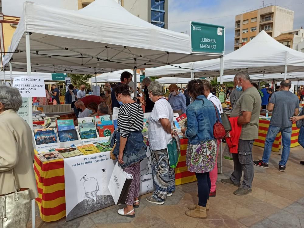 La zona de la pérgola del paseo Colón de Vinaròs acoge la XIX Feria del Libro, aprovechando la jornada festival del 9 de Octubre. Multitud de personas ha llenado a lo largo de la mañana los diferentes estands de esta feria que es un éxito de público.