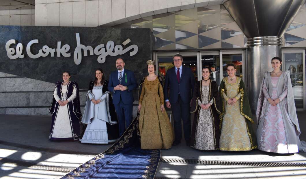 Na Violant d'Hongria 2024, Marta Rodríguez Santamaría; Jasmín Balán, Na Enmergarda; María Lidón García, Na Margarida; Noelia Lerín, Na Provençala; Sofía Martí, Na Rama, y Sonia Barberá, Na Dolça, junto al resto de los miembros del Cabildo, han recibido un homenaje en la sala de Ámbito Cultural por parte de la dirección de El Corte Inglés y han firmado los pergaminos como recuerdo de su visita.